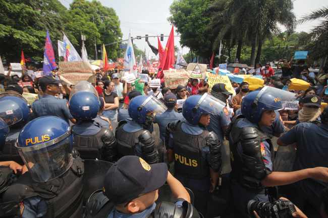 抗议民众表示,只要存在外国军队进驻和外国干涉,我们所拥有的就是假自由。菲律宾人如果不能自主掌控我们的政治、经济和国家未来的道路,这就是假自由。