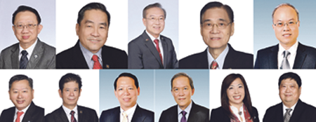 (左至右)名誉理事长许长安,理事长谢国万,执行副理事长黄书玮,副理事长陈华国、曾国强、杨良田、蔡金东、林天德、许文忠、施茵茵、许长泰。