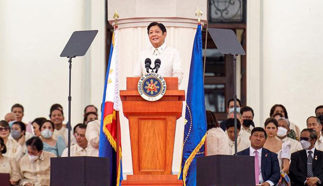 菲律宾新任总统费迪南德·罗慕尔德兹·马科斯6月30日在菲律宾国家博物馆正式宣誓就职,成为菲律宾第17任总统,任期6年。现年64岁的马科斯将搭档前任总统杜特尔特的女儿、现年44岁的莎拉·杜特尔特,领导新一任的菲律宾政府。