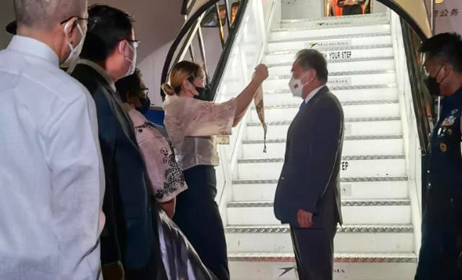 7月5日晚间,据菲律宾外交部表示,中国国务委员兼外长王毅于当天晚间10点左右抵达帕赛市(Pasay)的维拉莫尔空军基地,开始为期两天的正式访问。