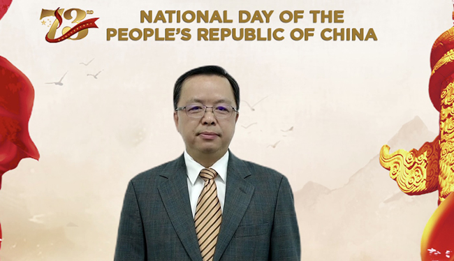 当地时间9月26日,中国驻菲律宾大使馆举行线上招待会,庆祝中华人民共和国成立73周年,喜迎中国共产党第二十次全国代表大会召开。