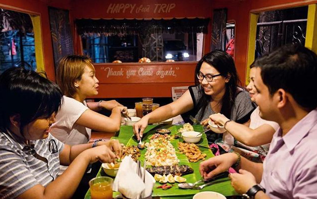 11、菲律宾是一个拥有无数海岛的国家,这里的海鲜也很便宜,非常适合喜欢海鲜的人过来品尝。但是需要注意的是,菲律宾人在做菜时喜欢用很重的调料,如果你不习惯或者喜欢清淡的口味,可以自己动手做饭。另外,菲律宾人也很爱吃肉,他们会用各种肉类做出各种美食,每一口都充满了香料和肉香,让人流口水。可以说,菲律宾是肉食者的天堂,比较有特色美食主要是烤乳猪、西尼根汤和拉普拉普鱼等。