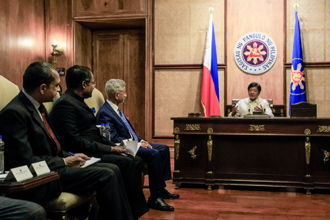 出席会见的还有菲律宾外交部长恩里克·马纳洛、执行秘书卢卡斯·贝尔萨明、国防部长吉尔伯特·特奥多罗、国家安全顾问秘书爱德华多·阿尼奥;印度外交部附加秘书(南部)拉维·尚卡尔、联合秘书桑迪普·库马尔·拜亚普和印度驻菲律宾大使尚布·库马兰。